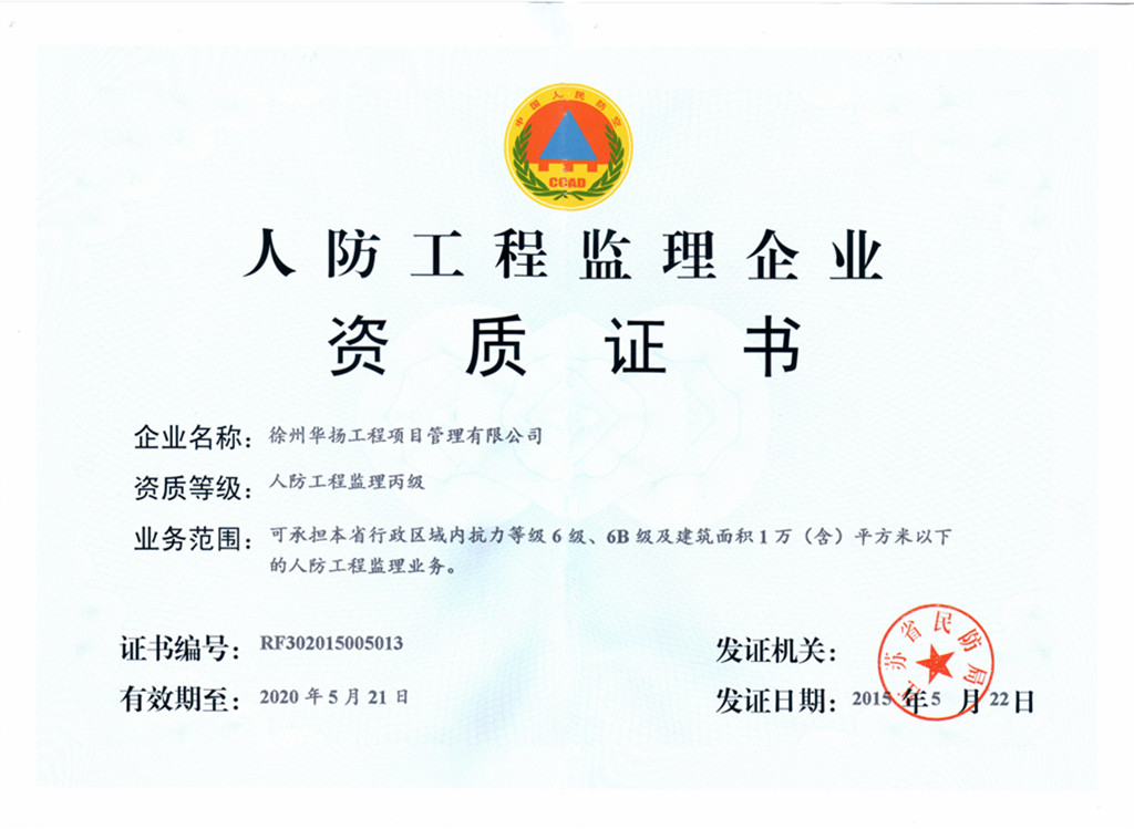 人防监理资质证书