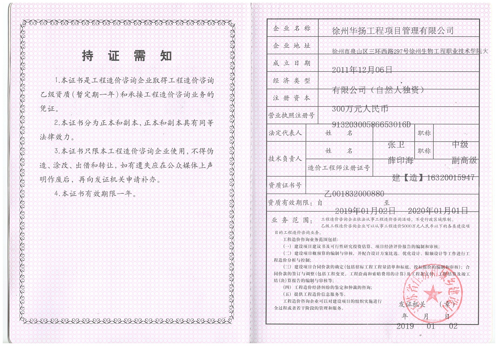 1 月2,我司顺利通过评审并取得工程造价咨询乙级资质。 此次工程造价咨询资质的取得,标志我司在工程管理领域的新升级,不仅为公司开拓造价咨询市场打开局面,而且进一步拓宽了业务范围,为公司打造项目管理一体化品牌服务提供了更大的保障,进一步增强了我公司的知名度,大大提高公司的竞争力,使公司在对外经济交往中增加了一张亮丽的名片。 工程造价咨询乙级资格的认证,旨在加强工程造价咨询企业管理,规范执业行为,提高行业准入门槛,营造公平公正有序健康的市场环境。取得该项认定的单位,可从事相应规模的建设项目建议书及可行性研究投资估算、项目经济评价报告的编制和审核,建设项目概预算的编制与审核,建设项目合同价款的确定、工程结算及竣工结(决)算报告的编制与审核,工程造价经济纠纷的鉴定和仲裁的咨询,实施建设项目全过程的造价管理和服务等相关业务。