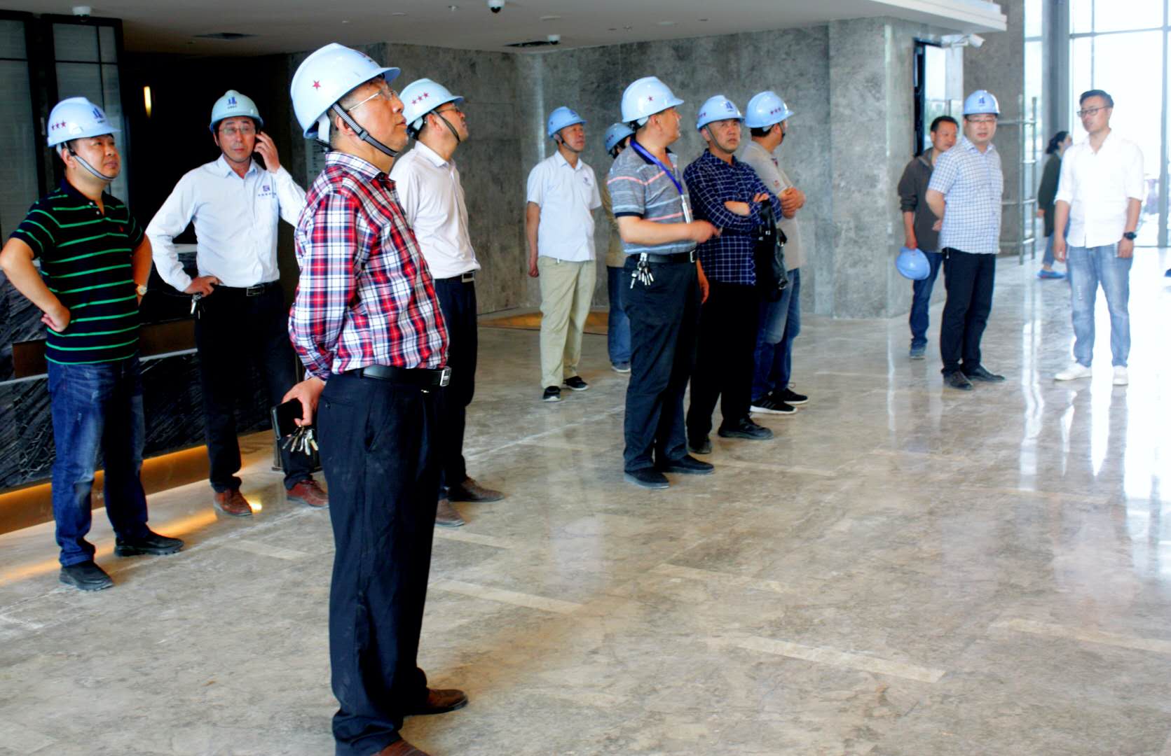 2019年5月17日,公司总工办、公司部分在建项目总监一行到徐州新盛广场G楼万豪酒店精装修工程学习及观摩。此次观摩检查的目的是为学习大型精装修工程经验,进一步提升后续服务项目管理水平。观摩伊始,大家在会议室开了简短座谈会,甲方代表对我公司项目监理组人员能够积极响应集团号召,高起点、高标准开展监理工作表示感谢。接着该项目总监代表就该现场规划、工程施工进度、质量控制、安全文明施工等方面作了详细介绍。随后,甲方代表亲自带队到项目现场,该项目整体现场管理有序,文明施工规范,从整体到细节,都体现出了比较高的管理水平。观摩人员边听边看边议,对精装修工程项目有了直观的了解。通过此次观摩交流活动,大家受益非浅,认为确实开阔了眼界,增长了见识,纷纷表示要把这次总结经验应运于各自的项目上,以提高项目管理服务水平。据悉,徐州新盛广场G楼万豪酒店精装修工程位于徐州市苏堤南路与湖北路交汇处。框架结构,地下2层/地上6层,其中:建筑面积:54300㎡,本项目主要是万豪酒店室内精装修工程。