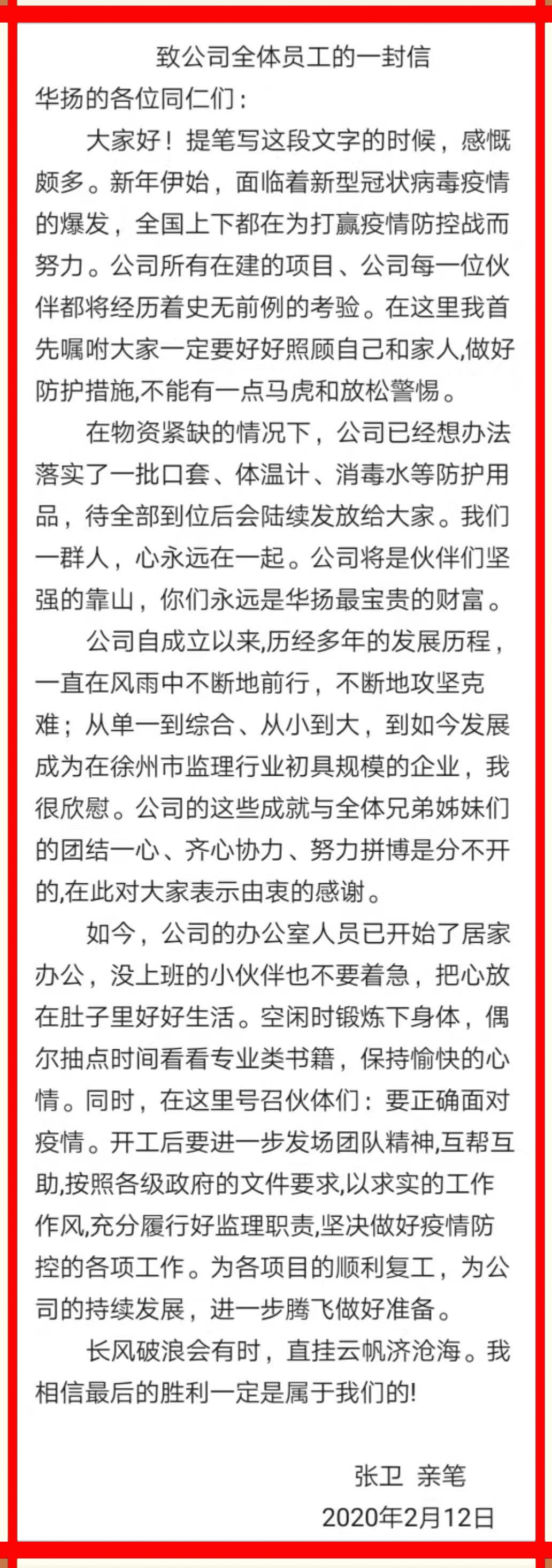 2020年面对新冠肺炎—致公司全体员工的一封信